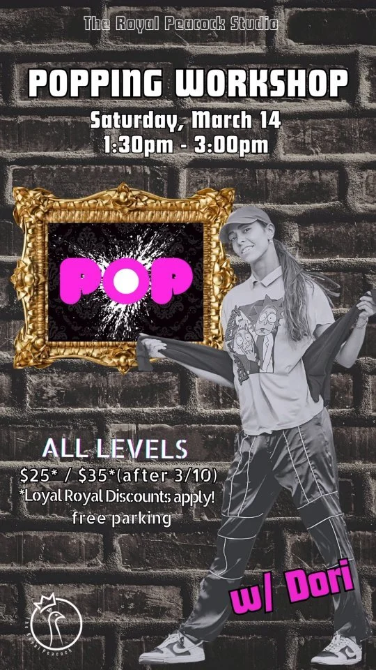 Our first ever Popping Workshop dives into the foundational techniques and funk-driven roots of this iconic street style. Dancers will explore core elements like hits, waves, tutting pathways, grooves, and texture play, building control through the muscles while staying deeply connected to the music. Our Queen Dori will focus on contrast movements—tight vs. loose, sharp vs. smooth—so you can fully embody the dynamics that make Popping so electrifying to watch and even better to dance. More than technique, this workshop is about presence. It’s about owning your movement, riding the beat, and performing with intention. All levels encouraged.